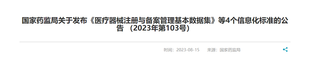 國家藥監(jiān)局關于發(fā)布《醫(yī)療器械注冊與備案管理基本數據集》等4個信息化標準的公告..